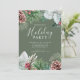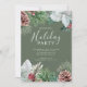 Esta elegante invitación a la fiesta de Navidades ofrece hermosas ramas de pino verde, bayas y pinares. La invitación es perfecta para invitar a sus amigos y familiares a una reunión festiva. El diseño general es festivo y refinado, y la invitación impresiona a los clientes.