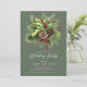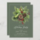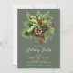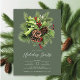 Esta elegante invitación a la fiesta de Navidades incluye un hermoso pino, bayas y pinares en un entorno verde. La invitación es perfecta para invitar a sus amigos y familiares a una reunión festiva. El diseño general es festivo y refinado, y la invitación impresiona a los clientes.