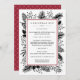 Navidades modernos y elegantes El diseño del menú de la cena de Redwood & Vine pone a su disposición sus deliciosos platos vacacionales enmarcados por un borde rojo arándano con botánicos festivos que asoman a los bordes en blanco y negro de moda.