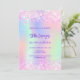 Invitación a una fiesta de Quinceañera femenina y de chica. Delante: Un fondo de color arcoiris y holográfico en color morado, rosa, verde menta. Decorada con un confetti rosa oscuro. Personalice y agregue un nombre y detalles del fiesta. El nombre está escrito con un guión de estilo con letras a mano, letras de color púrpura.