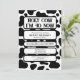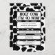 Yeehaw! Invite guests to a milestone celebration with this whimsical cow-print birthday invitation. The design features a black and white cowhide pattern with “Holy Cow, I’m 40 Now” in a bold western-style font at the top. Party details are displayed in separate editable text boxes for easy personalization. The back repeats the fun cow pattern, making it perfect for cowgirls, cowboys, or anyone turning a fabulous forty—or any other age!