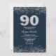 Invitación a la fiesta de cumpleaños número 90 de las mujeres de la Marina Blue & Silver Purpurina Faux Silver Confetti. Colección coincidente en Nicho y tienda Nest. Diseño Cortesía de Studio Dinamarca