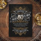 Celebre el gran 5-0 con estilo y humor con este diseño de cumpleaños inspirado en la etiqueta de whisky vintage. La tipografía negra, dorada y blanca es decorativa y elegante, lo que le da un toque retro clásico. Perfecto para el hombre (¡o la mujer!) en su vida que ama su whisky, sus espíritus, su bourbon y otras bebidas de licor. Presenta un diseño de etiquetas de whisky de época personalizable con tipografía ornamentada en blanco, dorado y negro. Ideal para los amantes del whisky y del licor en esta fiesta de 50 años.