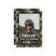 ¡Celebren con audaz estilo de camo con esta Hooah! Invitación de cumpleaños a la Camuflaje Verde Marrón. El frente presenta un marco de camo resistente de color tierra alrededor de una foto personalizada del invitado de honor, mientras que el reverso muestra el mismo borde de camo con un fondo verde para todos los detalles del fiesta. Perfecto para una fiesta de cumpleaños con paintball, pero fácilmente personalizable para cualquier tema, edad o ubicación. Personalice con nombre, información de evento y más para hacerlo único suyo.