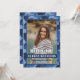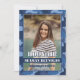 ¡Que su celebración sea inolvidable con esta Hooyah! Invitación al cumpleaños de la foto del Camuflaje Azul. La parte frontal tiene un marco azul audaz de camo alrededor de una foto personalizada del invitado de honor, mientras que la parte posterior muestra el mismo borde de camo con un fondo azul claro para todos los detalles del fiesta. Se muestra aquí para una fiesta de cumpleaños de bogavante, pero personalizable completo para cualquier edad, tema o ubicación. Personalice con nombre, información de evento y más para una invitación única.