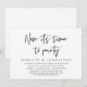 Tarjeta de invitación de boda con tema de escritura moderna (Ahora es hora de la fiesta). Es perfecta para su cena de boda informal junto al lago, baile y fiesta.
