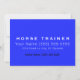Horse themed business card in a sharp, classic shade of royal blue. This was designed for a horse trainer, but is easily tailored to suit a multitude of equine industry jobs and services. Minimal design is great for posting in feed stores, local bulletin boards, and around town. Easy to see and uncluttered for the serious, no-nonsense potential customers/clients to see and instantly know who to call