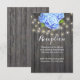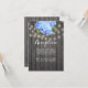 Tarjetas de Recepción de Madera de Granero con Hortensia Azul y Luces de Cuerda.