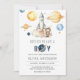 La invitación "Houston We Have A Boy Astronaut Space Baby Shower Invitation", encantadora y caprichosa invitación que captura perfectamente el tema de una ducha de bebé con temática espacial. El uso de colores suaves, como el blues suave y los pasteles suaves, confiere una sensación de serenidad e inocencia al diseño. Estos colores evocan un ambiente relajante y onírico, ideal para una celebración de una ducha de bebé.El entorno celeste muestra un paisaje espacial mágico y sereno que no sólo complementa el tema, sino que también añade un toque de asombro y encanto al diseño. Capta la imaginación e invita a los invitados a sumarse a la emoción de esta aventura cósmica. La mayoría de las letras son modificables - haga clic en el botón "Personalizar más adelante" para editarlas. Elementos coincidentes disponibles.