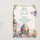 Esta mágica y encantadora invitación a la ducha de bebé tiene un colorido tema de cuento de hadas. A la izquierda está impresa la imagen de un castillo, con un jardín de flores y mariposas que acentúan las fronteras. En el centro se imprime un huevo de dragón de color arcoiris.