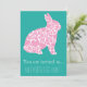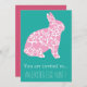 Perfecto para un fiesta de Pascua. Una invitación de cadera, niñita y elegante para un fiesta de Pascua para adultos o niños o celebración de caza de huevos de Pascua. Esta buena invitación a la fiesta incluye un conejito rosado con motivos de Pascua y un color de fondo y texto totalmente personalizable.