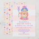 El huevo en estas lindas invitaciones a la fiesta de Pascua es tan EGGstra. Claramente no es suficiente ser un simple huevo. Tenía que vestirse todas con su mejor abrigo, perlas, guantes, tacones, un gorra de caja de pillolas con flores moradas, pelo azul, mucho maquillaje fabuloso - oh, y un cetro con un conejito malvavisco morado en la parte superior, por supuesto. Ella es un huevo decorado. El texto dice: "Estás invitado a un fiesta de Pascua, así que EGGstra, ¡simplemente TE MORIRÁS!" con espacio para todos los detalles de su fiesta. La parte trasera tiene un patrón de huevo pastel.