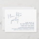 Esta es la tarjeta de invitación para la fiesta de huida de boda, con diseño de letra Azul marino minimalista / minimalismo (Invitación Ahora vamos a festejar)
