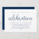 Tarjeta de invitación de huida de boda con tema de escritura en azul marino moderno (celebración feliz para siempre). Es perfecta para su recepción de huida de boda / fiesta de celebración después de la boda. Agregue sus detalles en fuente / letra negra coincidente.