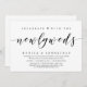 Tarjeta de invitación de huida de boda con tema de escritura moderna (Celebre con los recién casados). Es perfecta para su celebración informal de huida de boda junto al lago.