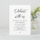 Esta es la Caligrafía Negra Romántica Moderna, Tarjeta de Invitación de Huida de Boda (Celebre con nosotros). Una tarjeta perfecta para invitar a su amada familia y amigos, en el anuncio de su huida de boda y celebración de la fiesta de recepción. Agregue los detalles de su celebración en la fuente / letra coincidente.
