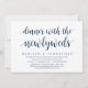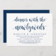 Tarjeta de invitación de huida de boda con guión moderno en tema azul marino clásico (Cena Con Los Recién Casados). Es perfecta para su cena de boda informal junto al lago, baile y fiesta de huida de boda.