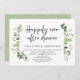 Tarjeta de invitación de boda con tema de vegetación de jardín de verano, con escritura negra moderna (cena feliz para siempre). Es perfecta para su recepción de boda / fiesta de celebración post-boda. Agregue sus detalles en fuente / letra negra coincidente.
