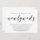 Tarjeta de invitación de huida de boda temática de guión moderno (Fiesta con los Recién Casados). Es perfecta para su celebración informal de huida de boda junto al lago.