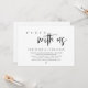 Tarjeta de invitación de huida de boda con tema de escritura minimalista moderna (fiesta con nosotros). Es perfecta para la recepción de su huida de boda / fiesta de celebración después de la boda. Agregue sus detalles en fuente / letra negra coincidente.