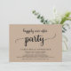 Hermosa Invitación de Fiesta Feliz para Siempre, Anuncio de Huida de Boda / Tarjeta de invitación, en diseño Kraft marrón rústico. Esto es perfecto para la recepción de su boda y la fiesta de celebración después de la boda. Agregue sus detalles en la fuente / letra coincidente.