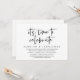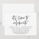 Tarjeta de invitación de boda con tema de escritura moderna (Es hora de celebrar). Es perfecta para su cena de boda informal junto al lago, baile y fiesta.