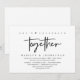Tarjeta de invitación de huida de boda con tema de guión negro moderno (celebramos juntos). Es perfecto para su recepción de huida de boda / fiesta de celebración después de la boda. Agregue sus detalles en fuente / letra negra coincidente.