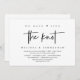 Tarjeta de invitación de huida de boda con tema de guión negro moderno (nos hemos casado). Es perfecta para su recepción de huida de boda / fiesta de celebración post-boda. Agregue sus detalles en fuente / letra negra coincidente.