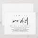 Tarjeta de invitación de huida de boda con tema de escritura negra moderna (oh sí lo hicimos). Es perfecta para su recepción de huida de boda / fiesta de celebración después de la boda. Agregue sus detalles en fuente / letra negra coincidente.