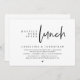 Tarjeta de invitación de huida de novios con tema de escritura minimalista moderna (almuerzo felices para siempre). Es perfecta para la recepción de su huida de novios / celebración posterior a la boda. Agregue sus datos en fuente / letra negra coincidente.