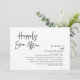 Tarjeta de invitación de huida de novios con tema de escritura negra moderna (Feliz para siempre). Es perfecta para su recepción de huida de novios / fiesta de celebración post-boda. Agregue sus detalles en fuente / letra negra coincidente.
