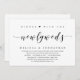 Tarjeta de invitación de huida de novios con tema de guión moderno (Cena con los recién casados). Es perfecta para su celebración informal de huida de novios junto al lago.