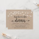 Hermosas luces de cadena de granja rústica moderna, fuente de letra script negra en fondo kraft marrón, anuncio de huida de novios, tarjeta de invitación (cena de feliz para siempre). Esto es perfecto para la recepción de su boda y la fiesta de celebración posterior a la boda. Agregue sus detalles en fuente / letra coincidente.