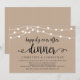 Hermosas Luces de Cadena de Granja Rústica Moderna, fuente de letra negra en Fondo Kraft Marrón, Anuncio de Huida de Novios, Tarjeta de Invitación (Cena Felices para Siempre). Esto es perfecto para la recepción de su boda y la fiesta de celebración posterior a la boda. Agregue sus detalles en la fuente / letra coincidente.