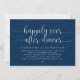 Tarjeta de invitación de huida de boda con tema de escritura azul marino moderno (cena felices para siempre). Es perfecta para su recepción de huida de boda / fiesta de celebración después de la boda. Agregue sus datos en fuente / letra negra coincidente.
