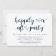 Guión moderno con tema de azul marino clásico, tarjeta de invitación de huida de novios (Fiesta Felices para siempre). Es perfecto para su cena de boda informal de huida de novios junto al lago, baile y fiesta.