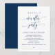 Hermosa Caligrafía Moderna en Azul Marino, Anuncio de Huida de Novios, Tarjeta de Invitación (Fiesta de Felicidad Eterna). Esto es perfecto para la recepción de su boda y la fiesta de celebración posterior a la boda. Agregue sus detalles en fuente / letra coincidente.