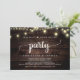 Hermosa invitación de Fiesta Felices para Siempre, Anuncio de huida de novios / Tarjeta de invitación, en madera rústica de granja, diseño de luces de cuerda. Esto es perfecto para la recepción de su boda y la fiesta de celebración posterior a la boda. Agregue sus detalles en la fuente / letra coincidente.