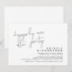 Esta es la tarjeta de invitación para la fiesta de huida de novios, con diseño minimalista de letra negra (Invitación a la Fiesta Feliz para Siempre).