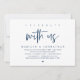Tarjeta de invitación de huida de novios con tema de escritura azul marino moderno (Celebra con nosotros). Es perfecta para su recepción de huida de novios / fiesta de celebración después de la boda. Agregue sus detalles en la fuente / letra coincidente.