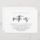 Tarjeta de invitación de huida de novios con tema de guión negro moderno (Fiesta con nosotros). Es perfecto para su recepción de huida de novios / fiesta de celebración después de la boda. Agregue sus detalles en fuente / letra negra coincidente.