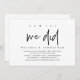 Tarjeta de invitación de huida de novios con tema de escritura negra moderna (oh sí lo hicimos). Es perfecta para su recepción de huida de novios / fiesta de celebración después de la boda. Agregue sus detalles en fuente / letra negra coincidente.