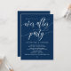 Hermosa Caligrafía Moderna, Anuncio de Boda Fugaz, Tarjeta de Invitación (Fiesta de Felices Para Siempre). Esto es perfecto para la recepción de su boda y la fiesta de celebración posterior a la boda. Agregue sus detalles en la fuente / letra coincidente. Tema Azul Marino.