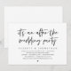 Tarjeta de invitación de boda con tema de escritura negra moderna (Después de la fiesta de bodas). Es perfecta para su recepción de boda / fiesta de celebración después de la boda. Agregue sus detalles en fuente / letra negra a juego.