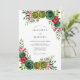 This design features a rich botanical arrangement of hunter green and cranberry red watercolor florals. Lush succulents and velvety roses are intertwined with delicate foliage and fern-stems for a sophisticated winter aesthetic. The vibrant jewel-tone palette evokes a sense of holiday elegance and timeless woodland charm.