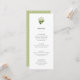 Un elegante texto de fácil personalizar enumera las opciones de menú de su evento en un nuevo estilo tradicional del gran milenio y presenta una paleta de colores limpios de blanco y verde con mucho espacio blanco compuesto y un ilustracion antiguo de una flor de horangea verde y blanca.