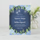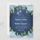 Estas invitaciones a la boda incluyen flores de hidrangea azul acuática y hojas de follaje verde sobre un fondo azul marino con luces de cuerdas de jarro de albañil. Personalízalos con tu propio texto. Estas invitaciones forman parte de una colección que incluye una gama de productos coincidentes. Por favor visite las páginas de la colección en nuestra tienda para ver el rango completo.