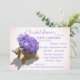 Hermosa hortensias púrpura en una ducha de conchas mareales. Personalice el texto en la parte frontal y posterior de la invitación para que se adapte a sus necesidades.