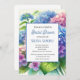 Hidrangeas, flores azules polvorientas, verano, invitación. Invitaciones elegantes, hermosas, a una ducha de novia. Hidraneas de acuarela pintadas a mano. Personalízalo con tus detalles.