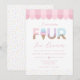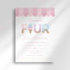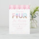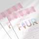 Celebrate your toddler's milestone with this "I Scream Four" ice cream parlor birthday invitation. This adorable design features watercolor sprinkle typography, a classic pink awning, and a whimsical sundae aesthetic. Perfect for a summer ice cream social, this cheerful invite is easily personalized to scoop up some fun for your daughter’s sixth birthday party.